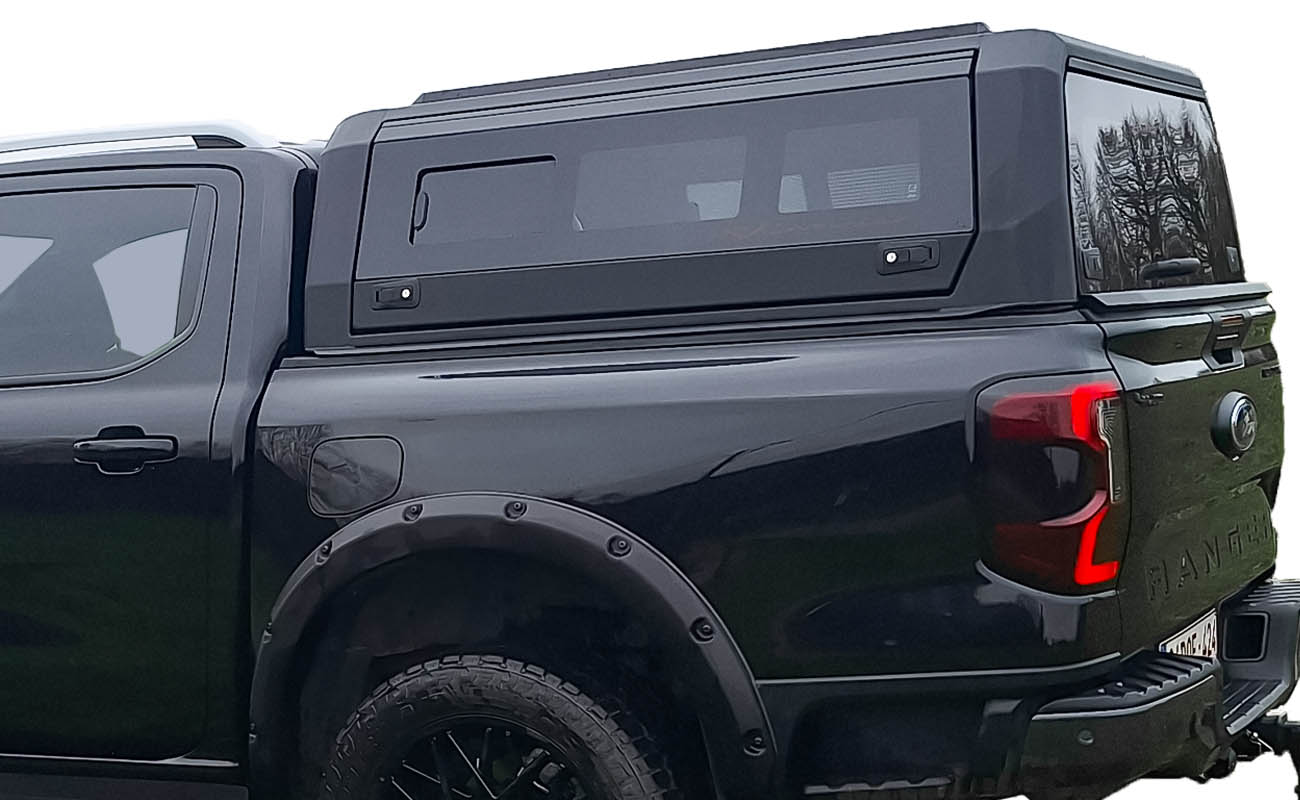 Die alternative XTREME-Variante mit seitlichen Glasklappen und Schiebefenster ist ebenfalls verfügbar. Beide Hardtops werden in einer hochwertigen schwarzen Pulverbeschichtung geliefert. Eine allgemeine Betriebserlaubnis (ABE) ist ebenfalls enthalten. Auch erhältlich für den Ford Ranger Extrakabine und Ranger Raptor!