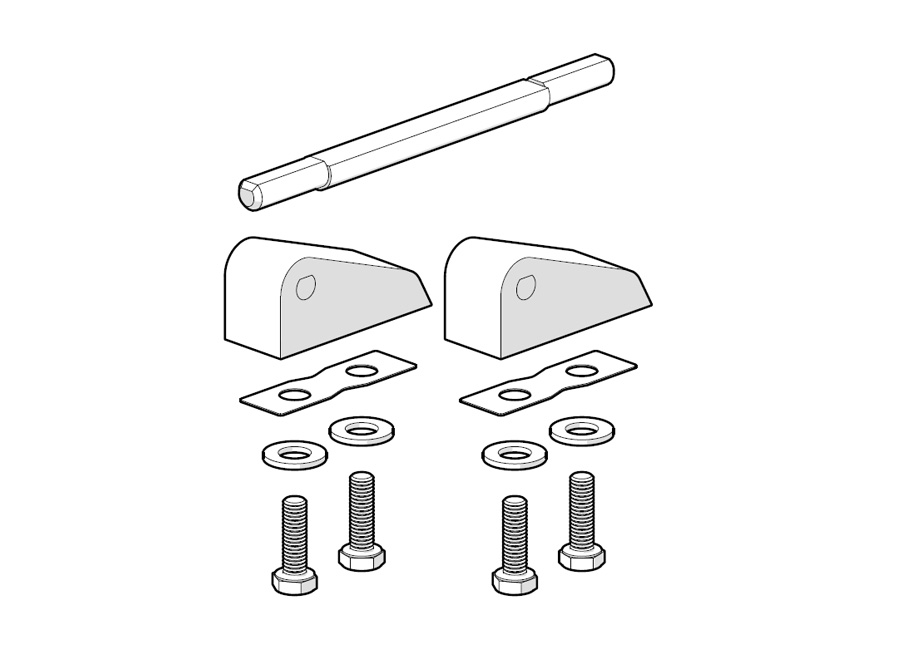 Scharnier Set (2x Bolzen, 4xBöcke, Unterlagen und Schrauben) für das Mountain Top Classic.
