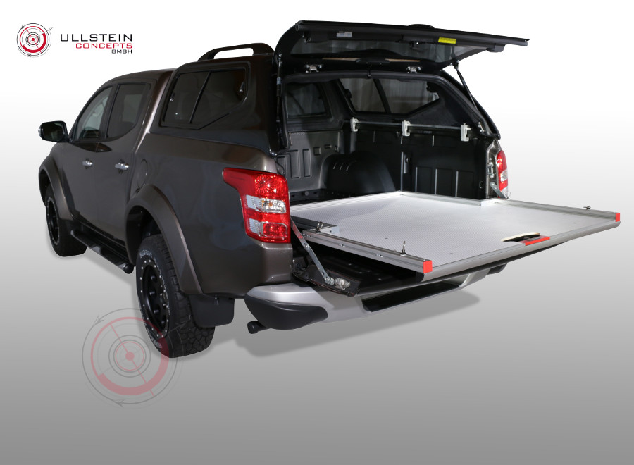 Mit unserem neuen ausziehbaren Schiebeplateau WORKS beladen und sichern Sie Ihr Ladegut professionell in Ihrem Pickup. Das neue Schubladensystem eröffnet aufgrund seiner Aluminiumbauart viele neue Möglichkeiten für einen individuellen Ausbau sowie eine spezifische Nutzung des Pickup-Laderaums. Ein großer Vorteil unseres Produkts besteht in dessen Form: aufgrund der Verjüngung des Ladeflächenauszugs zwischen den Radkästen, ist der Laderaum perfekt ausgenutzt und vorne im Bereich der Heckklappe entsteht noch mehr Platz in der Breite für Ihr Ladegut.