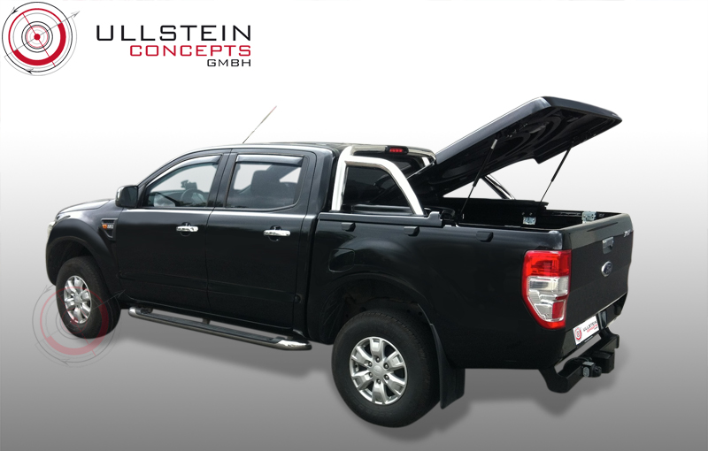 Laderaumabdeckung AERO inklusive Lackierung in gewünschter Wagenfarbe für den Ford Ranger mit werksseitigem Überrollbügel (Sondermodell Limited). Die Abdeckung enthält einen Montagekit, mit welchem der Überrollbügel des Limited montiert wird.