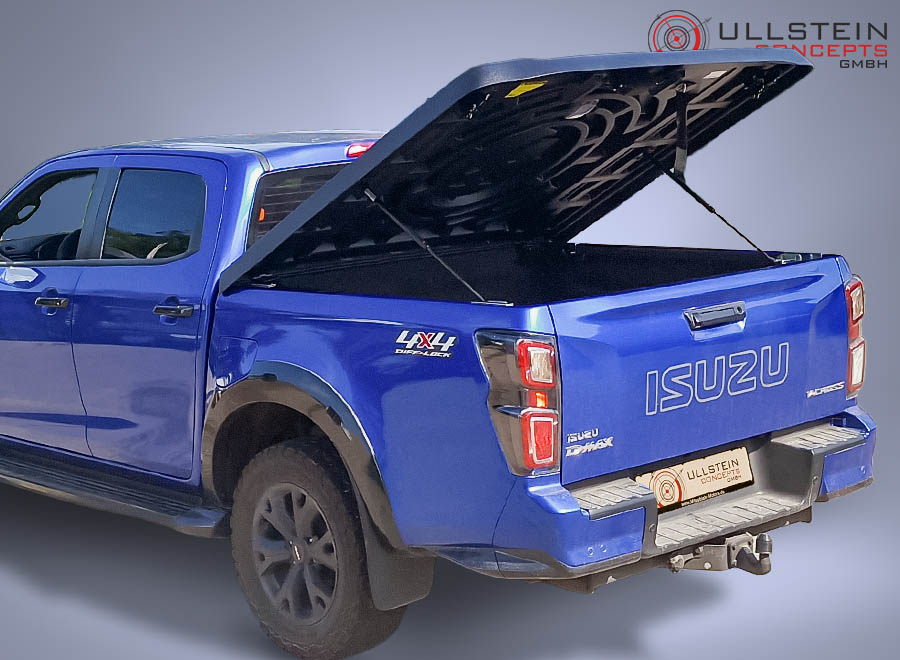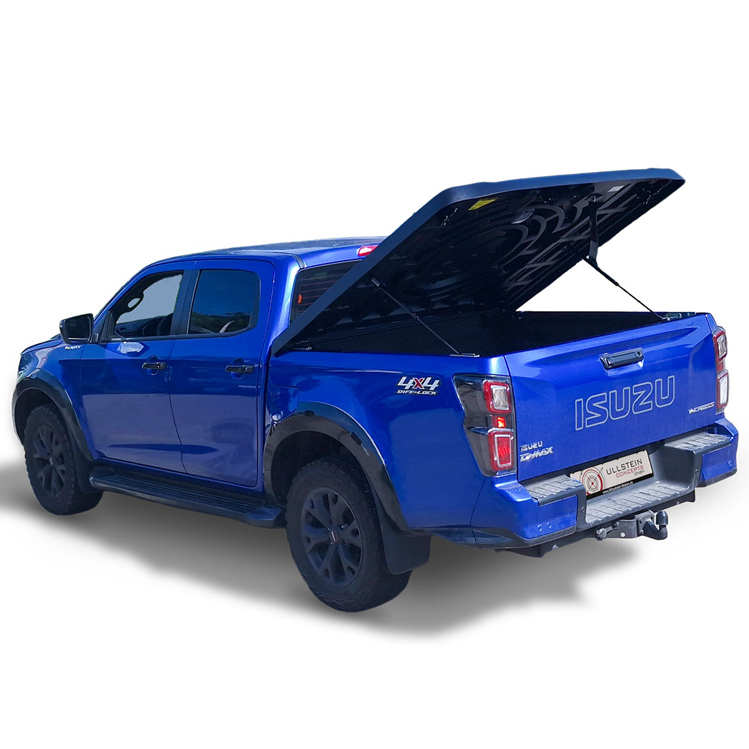 Laderaumabdeckung AERO inklusive Lackierung in schwarz mit genarbter Oberfläche für den Isuzu D-Max Doppelkabine ab 2020.