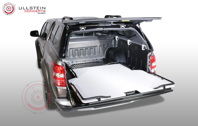Ein großer Vorteil unseres Produkts besteht in dessen Form: aufgrund der Verjüngung des Ladeflächenauszugs zwischen den Radkästen, ist der Laderaum perfekt ausgenutzt und vorne im Bereich der Heckklappe entsteht noch mehr Platz in der Breite für Ihr Ladegut. Sowohl die Montage als auch die Demontage sind leicht durchzuführen. Die Montagezeit beträgt etwa 120 Minuten.