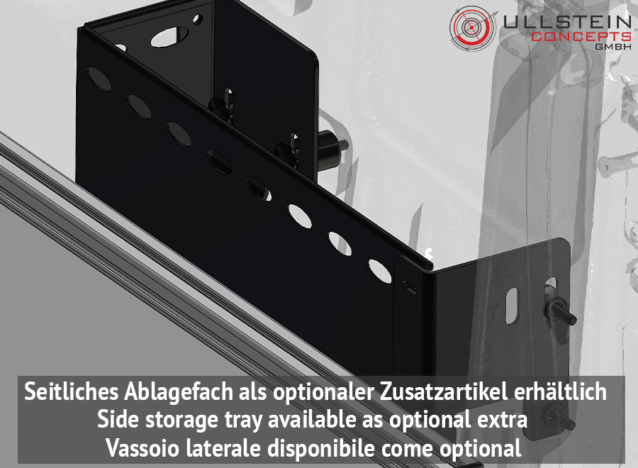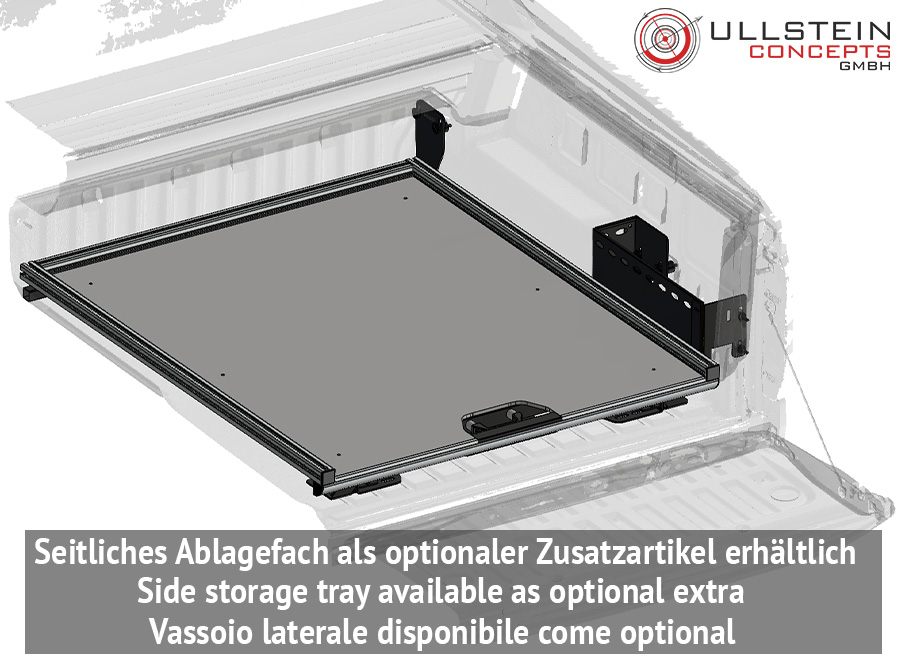 Hierbei verlieren wir bei all unseren Produkten nie unser Ziel aus dem Auge, die Platzmöglichkeiten optimal auszunutzen. Da bei diesen Ausstattungsvarianten zwischen den Radhäusern und dem Rücklichtbereich ein großer Raum nur eingeschränkt nutzbar ist, wurden für diesen Bereich seitliche Ablagefächer entwickelt, in welchen typische Utensilien, wie Zurrgurte, Flaschen oder andere Kleinteile perfekt Platz finden. Es kann je ein Ablagefach auf jeder Seite montiert werden. Die Ablagefächer sind als optionaler Zusatzartikel erhältlich.