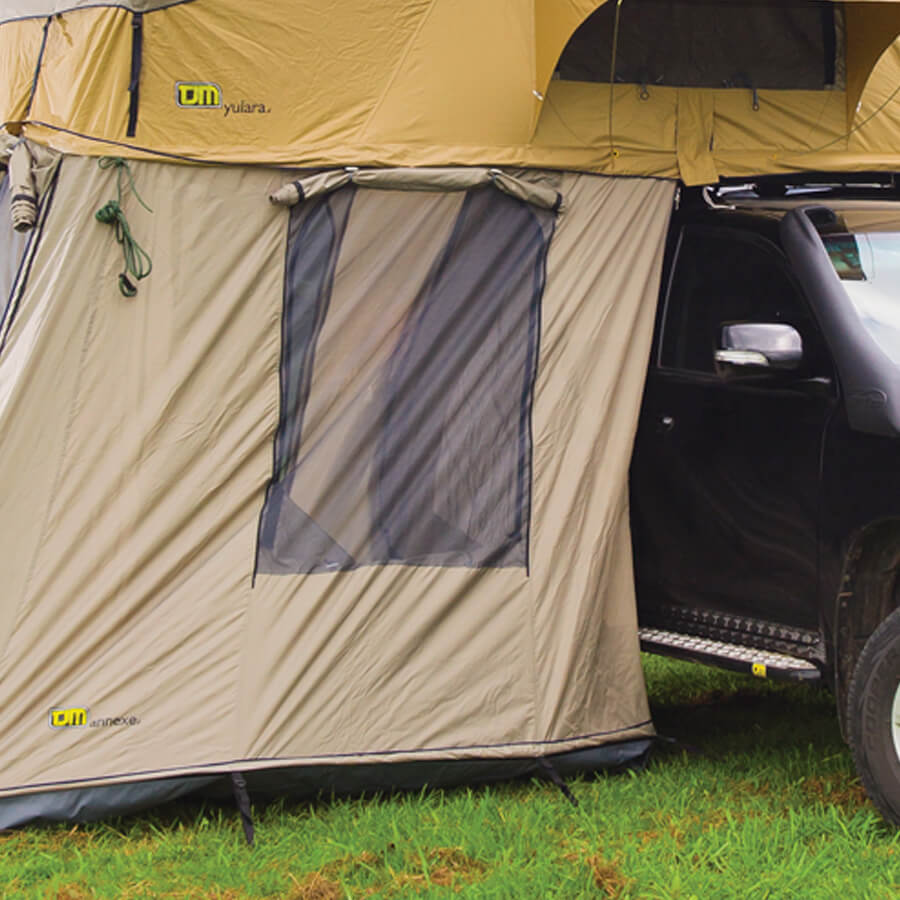 Dieses Vorzelt ist die perfekte Ergänzung für das Yulara Dachzelt. Es schmiegt sich angenehm an das Fahrzeug und ist nicht nur optisch ein Highlight. Es ermöglicht trockenen, ungestörten Zugang zum Dachzelt. Neben dem gewohnt hohen Komfort wird somit auch ein erhöhtes Maß an Privatsphäre geboten. Zudem ist auch noch ausreichend Platz für zwei weitere Schlafplätze oder aber weitere Camping-Utensilien vorhanden.