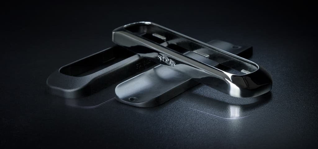 Die Montage erfolgt mit einem Click-on-Rahmen und nicht sichtbaren Schrauben. Im Lieferumfang enthalten sind ein schwarzer und ein verchromter Click-on-Rahmen. So können Sie Ihren bevorzugten Look wählen. Das mitgelieferte EVA-Pad (Ethylen-Vinyl-Acetat) wird zwischen dem Gehäuse und Ihrem Fahrzeug angebracht und sorgt für einen weichen Kontaktpunkt.