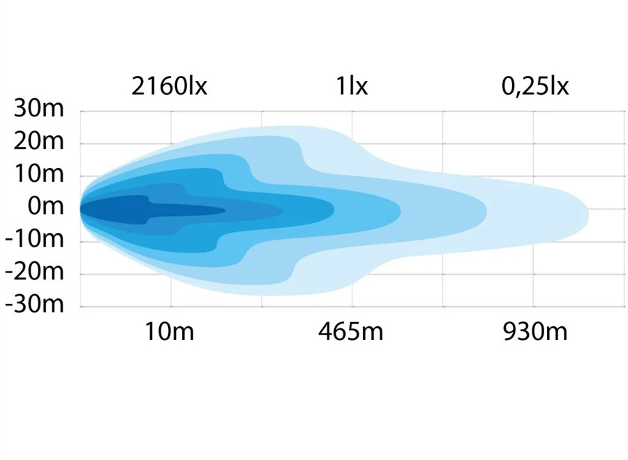 Leuchtweite bei 1lux 465m