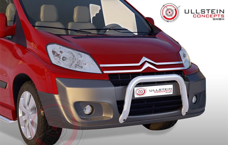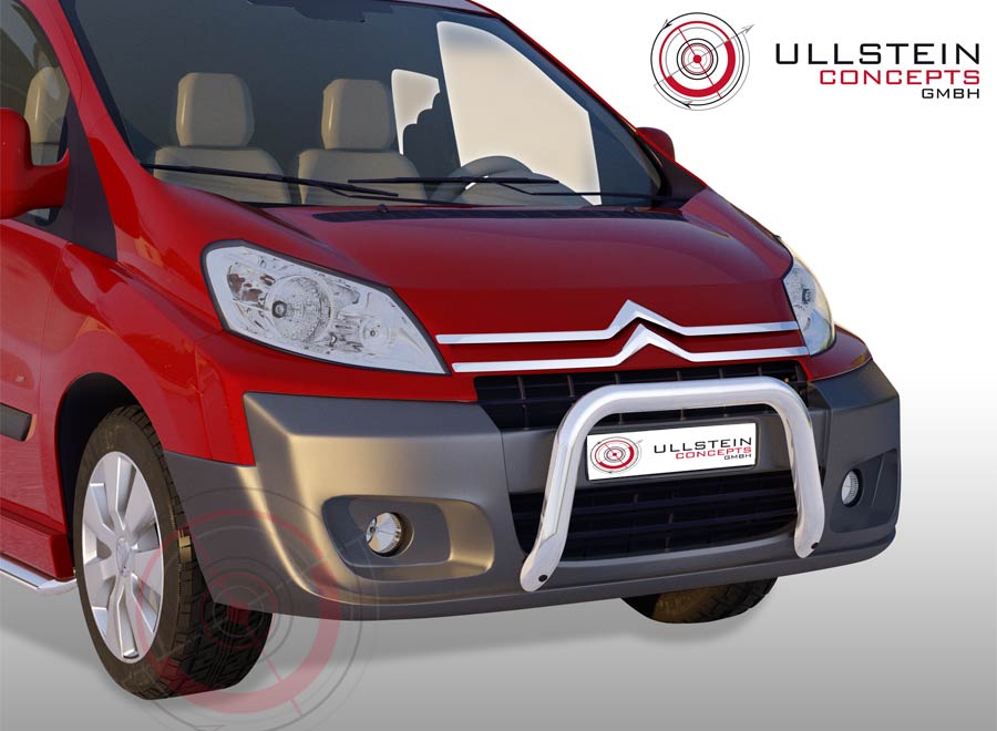 Frontschutzbügel hoch aus spiegelpoliertem 60 mm Edelstahlrohr. Durch eine aufwendige Handpolitur unserer Edelstahlteile inkl. der Schweißnähte wird ein optimaler Korrosionsschutz gewährleistet. Unsere Frontbügel absolvierten die aktuellsten europäischen Prüfnormen und werden mit einem eingraviertem E-Prüfzeichen ausgeliefert. Eine zusätzliche TÜV Vorführung ist somit nicht mehr notwendig. Die computergesteuerte Produktentwicklung gewährleisten eine optimale Passform und ein harmonisches Design. Die Montagezeit beträgt ca. 30-60 Minuten. Für den Citroen Jumpy ab 2012.