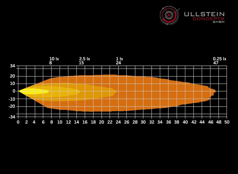 Leuchtweite bei 1lux 24m