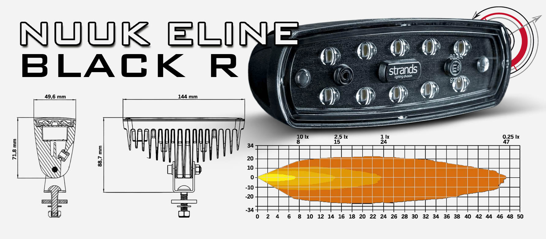 Der Strands Nuuk E-Line Black R 13w Rückfahrscheinwerfer mit ECE R23 Zulassung, ist die perfekte Ergänzung zu Ihrem Standard-Rückfahrlicht. Das dunkle, dezente Design der kompakten LED Leuchte, mit einer Höhe von nur 5 cm ohne Halterung, passt perfekt zu jedem Fahrzeug.