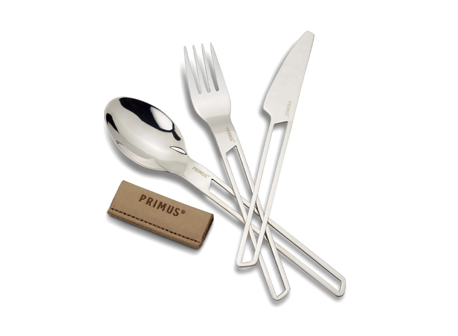 Das Primus CampFire Cutlery Set ist ein Besteck-Set bestehend aus einem Messer, einer Gabel und einem Löffel gefertigt aus 18/8 Edelstahl. Mit der Umfassung aus Leder ist alles ordentlich und platzsparend verstaut.