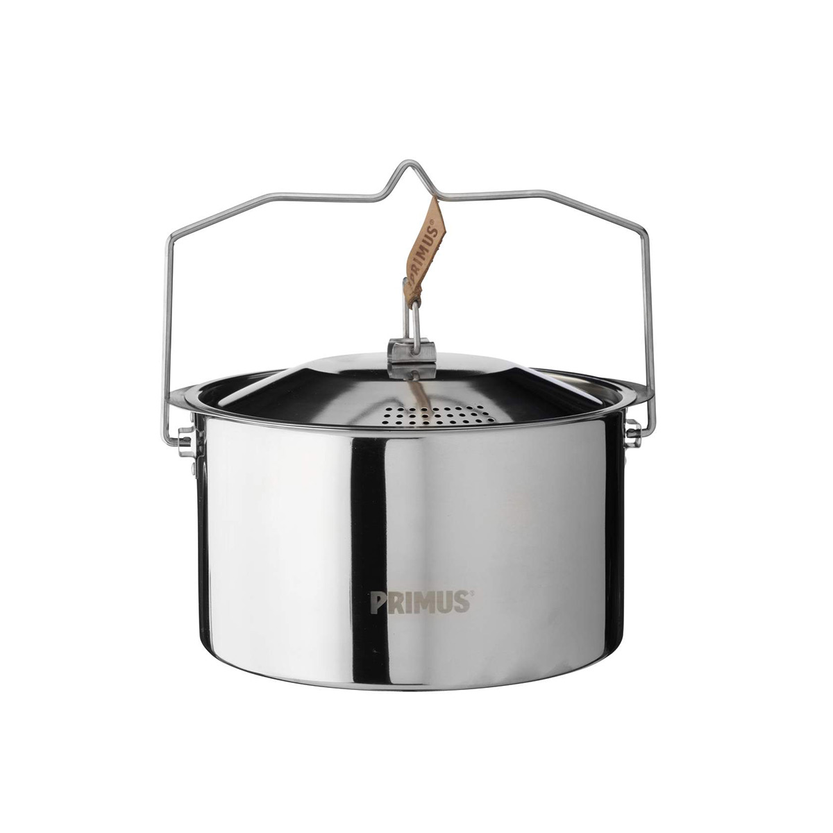 Der Primus CampFire Pot ist ein robuster Edelstahl-Topf (18/8) mit einem Fassungsvermögen von 3,0l in edlem Design. Der integrierte einklappbare Griff und der Deckel bestehen aus robustem Metall, wodurch sich der Kochtopf auch optimal für eine Benutzung über einem Lagerfeuer eignet. Die im Deckel vorhandenen kleinen Löcher sorgen für ein einfaches Abgießen von überschüssigen Flüssigkeiten. Geliefert wird der Topf in einem praktischen Aufbewahrungsbeutel. Der CampFire Pot ist auch mit einem Fassungsvermögen von 5l verfügbar.