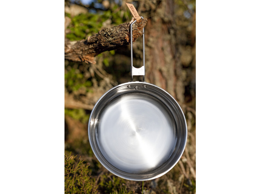 Die CampFire Pfanne mit einem Durchmesser von 25cm ist aus 18/8 Edelstahl gefertigt und ist somit sehr robust und langlebig. Der Boden der Pfanne besteht aus Aluminium, wodurch für eine gleichmäßige Verteilung der Wärme gesorgt wird. Durch das robuste Material kann die Pfanne sowohl auf einem einfachen Kocher als auch über einem Lagerfeuer benutzt werden. Mithilfe des integrierten einklappbaren Griffs aus Edelstahl lässt sie sich ohne Probleme verstauen. Geliefert wird die Pfanne in einem praktischen Aufbewahrungsbeutel. Die CampFire Pfanne ist auch mit einem Durchmesser von 21cm erhältlich.