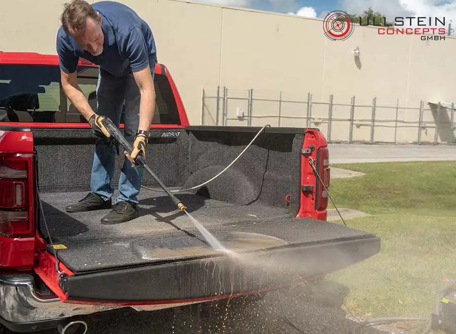 Der Bed Rug Teppich schützt die Pickup-Pritsche vor Dellen und Abrieb, und erhöht den Komfort durch die kniefreundliche Polsterung. Der Ladeflächenschutz ist beständig gegen Chemikalien, Öle, Schimmel, Mehltau und längere UV-Exposition.