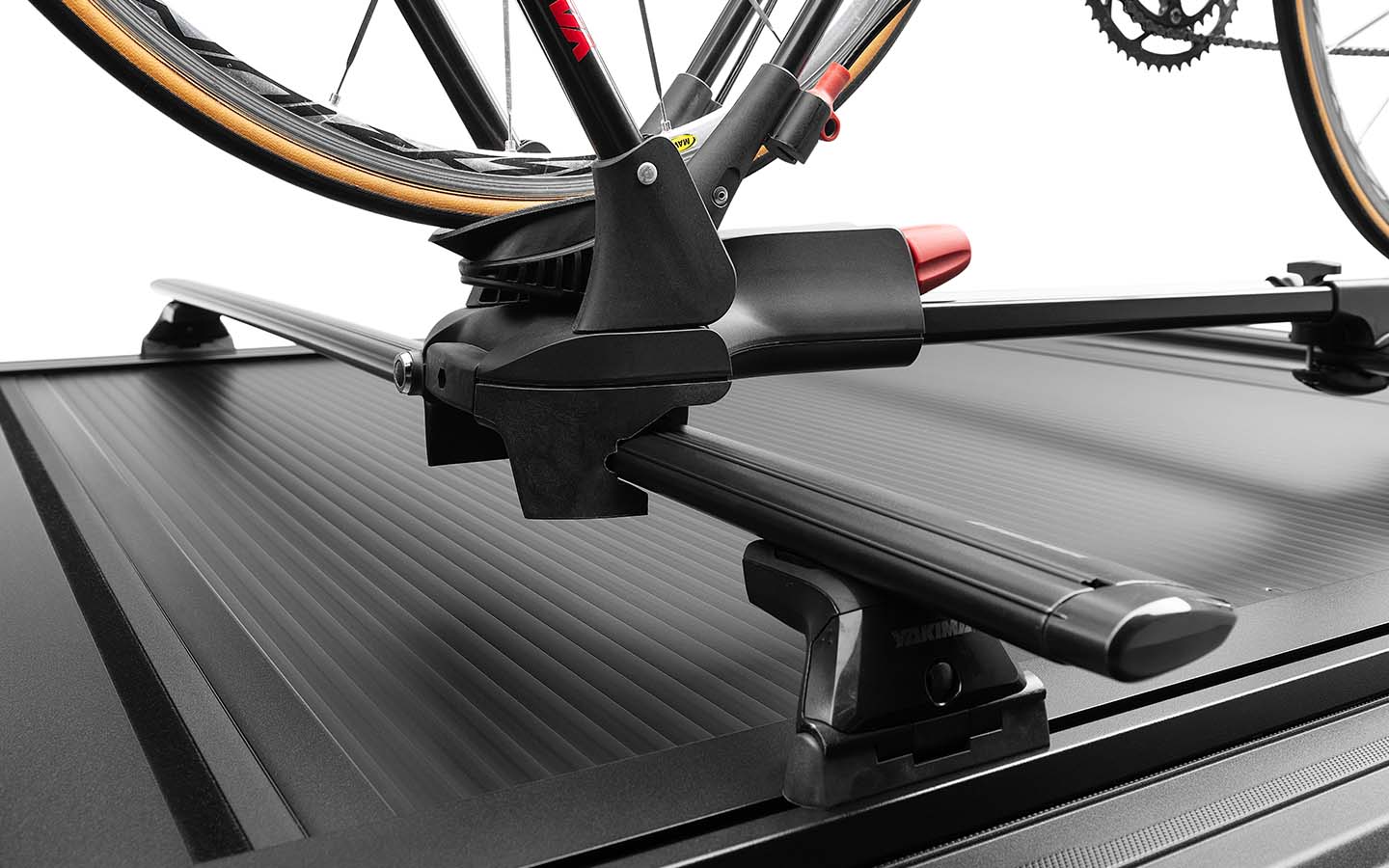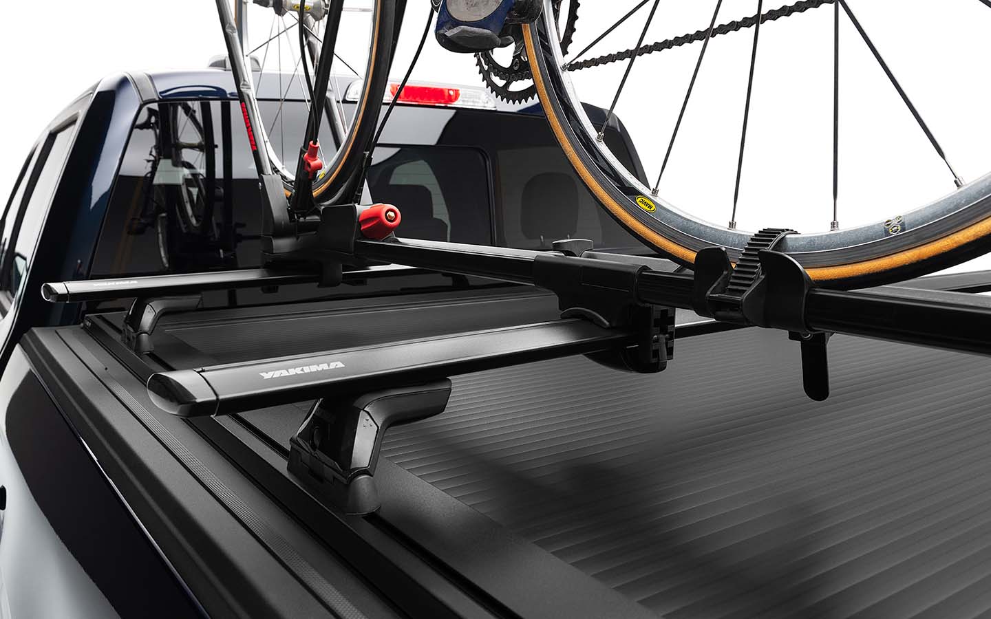Das Trax Rail System kann Zubehör der meisten großen Hersteller wie Yakima®, Thule® und Rhino Rack® aufnehmen. Mit der Möglichkeit, Fahrräder, Kühlboxen, Outdoor-Ausrüstung und vieles mehr auf der Ladeflächenabdeckung zu montieren, verdoppelt das Trax Rail System praktisch die Ladekapazität Ihres Pickups.