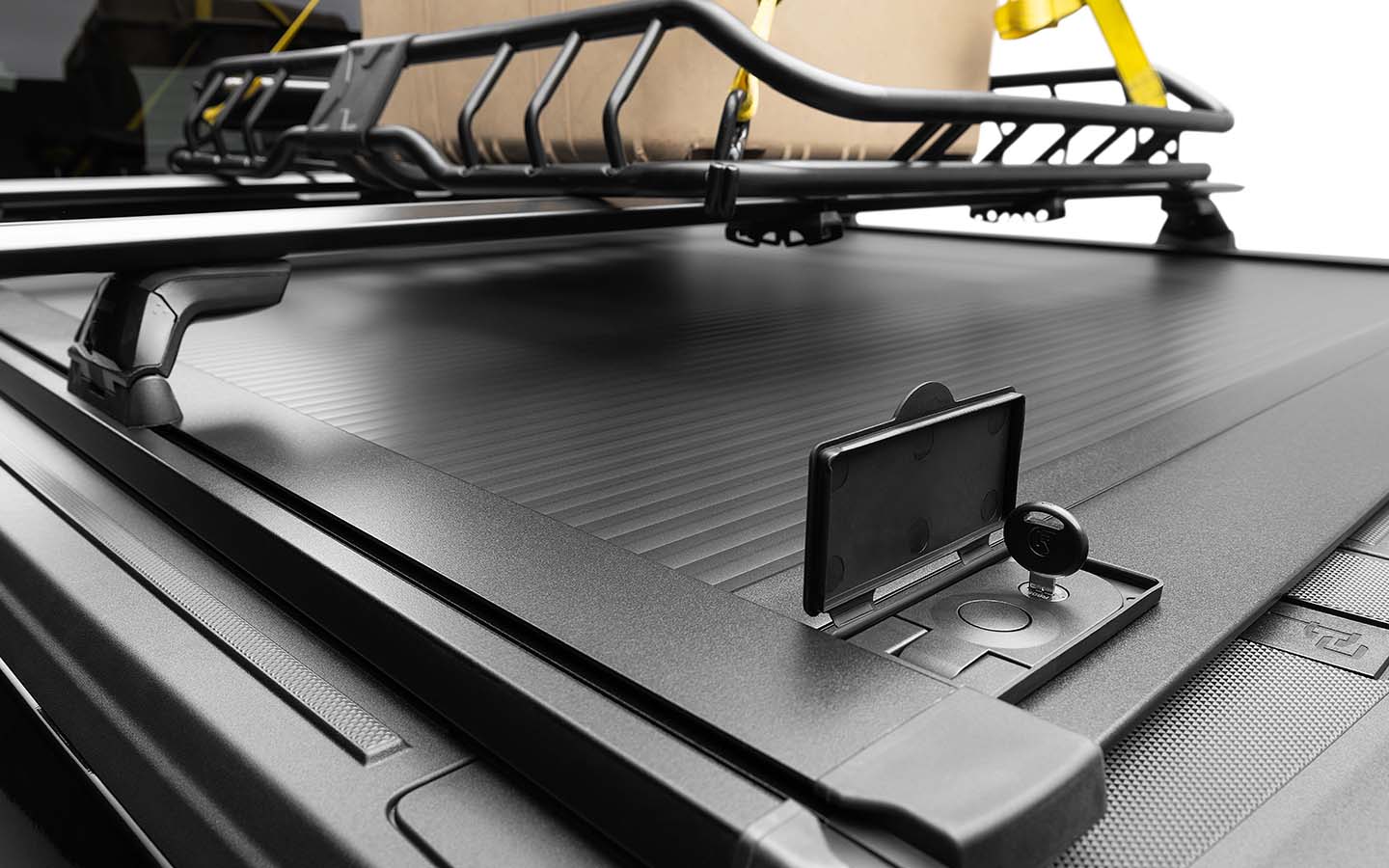 Das RetraxONE XR Laderaumrollo mit dem T-Nut-kompatiblen Trax Rail System sorgt für eine trockene Ladefläche, mehr Verstau- und Transportmöglichkeiten und neue Zubehöroptionen.