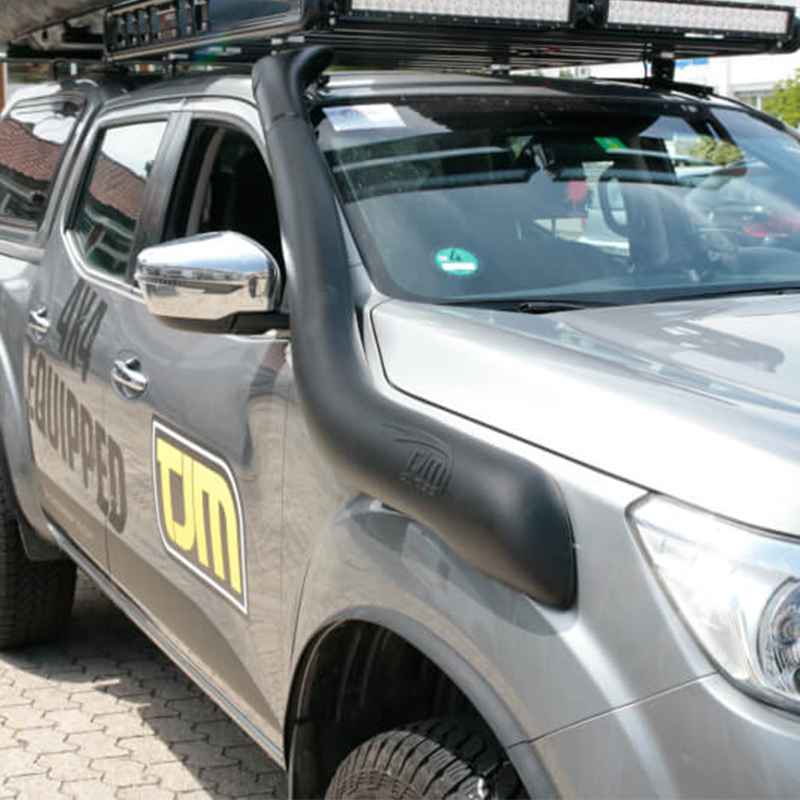 Im Gegensatz zu anderen Herstellern passt TJM den Schnorchel individuell an die natürliche Form des Fahrzeugs an.