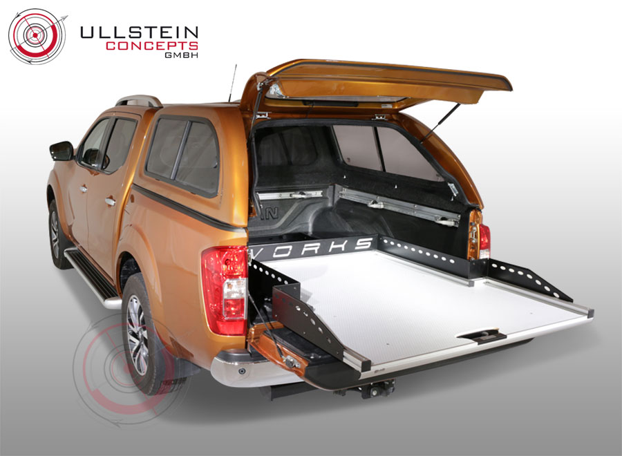 Mit unserem neuen ausziehbaren Schiebeplateau WORKS beladen und sichern Sie Ihr Ladegut professionell in Ihrem Pickup. Das neue Schubladensystem eröffnet aufgrund seiner Aluminiumbauart viele neue Möglichkeiten für einen individuellen Ausbau sowie eine spezifische Nutzung des Pickup-Laderaums. Ein großer Vorteil unseres Produkts besteht in dessen Form: aufgrund der Verjüngung des Ladeflächenauszugs zwischen den Radkästen, ist der Laderaum perfekt ausgenutzt und vorne im Bereich der Heckklappe entsteht noch mehr Platz in der Breite für Ihr Ladegut.
