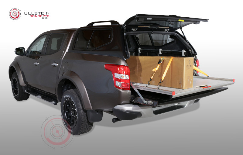 Mit unserem neuen ausziehbaren Schiebeplateau WORKS beladen und sichern Sie Ihr Ladegut professionell in Ihrem Pickup. Das neue Schubladensystem eröffnet aufgrund seiner Aluminiumbauart viele neue Möglichkeiten für einen individuellen Ausbau sowie eine spezifische Nutzung des Pickup-Laderaums. Ein großer Vorteil unseres Produkts besteht in dessen Form: aufgrund der Verjüngung des Ladeflächenauszugs zwischen den Radkästen, ist der Laderaum perfekt ausgenutzt und vorne im Bereich der Heckklappe entsteht noch mehr Platz in der Breite für Ihr Ladegut.