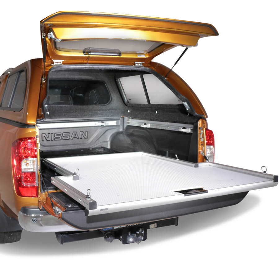 Mit unserem neuen ausziehbaren Schiebeplateau WORKS beladen und sichern Sie Ihr Ladegut professionell in Ihrem Pickup. Das neue Schubladensystem eröffnet aufgrund seiner Aluminiumbauart viele neue Möglichkeiten für einen individuellen Ausbau sowie eine spezifische Nutzung des Pickup-Laderaums. Ein großer Vorteil unseres Produkts besteht in dessen Form: aufgrund der Verjüngung des Ladeflächenauszugs zwischen den Radkästen, ist der Laderaum perfekt ausgenutzt und vorne im Bereich der Heckklappe entsteht noch mehr Platz in der Breite für Ihr Ladegut.