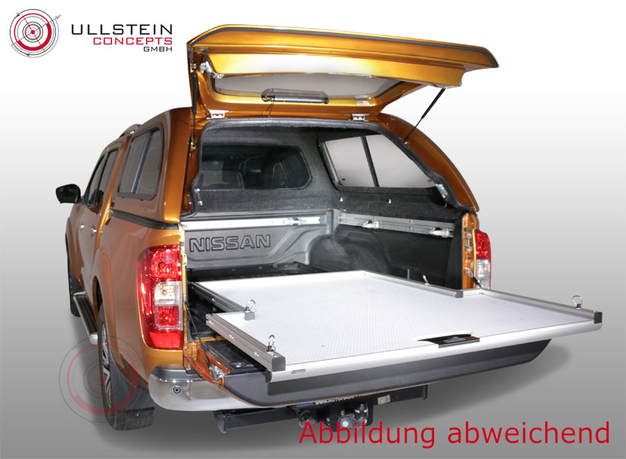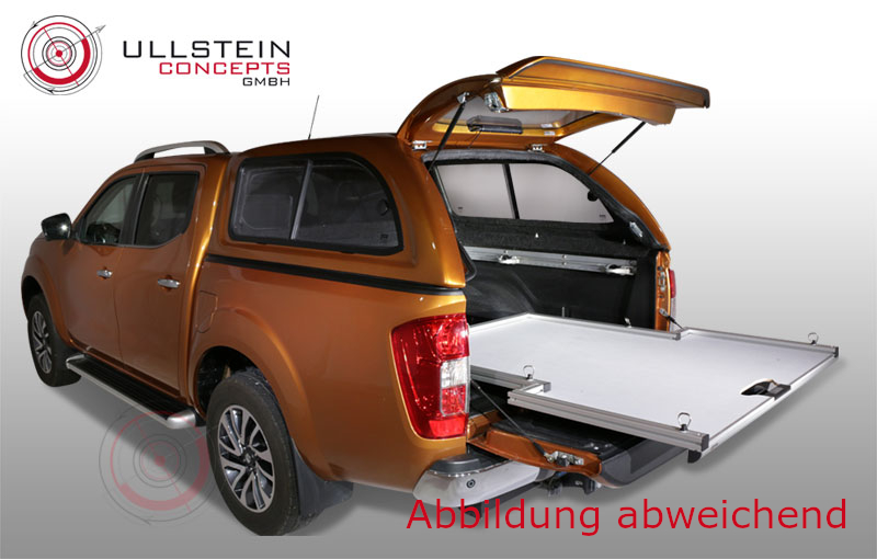 Mit unserem neuen ausziehbaren Schiebeplateau WORKS beladen und sichern Sie Ihr Ladegut professionell in Ihrem Pickup. Das neue Schubladensystem eröffnet aufgrund seiner Aluminiumbauart viele neue Möglichkeiten für einen individuellen Ausbau sowie eine spezifische Nutzung des Pickup-Laderaums. Ein großer Vorteil unseres Produkts besteht in dessen Form: aufgrund der Verjüngung des Ladeflächenauszugs zwischen den Radkästen, ist der Laderaum perfekt ausgenutzt und vorne im Bereich der Heckklappe entsteht noch mehr Platz in der Breite für Ihr Ladegut.