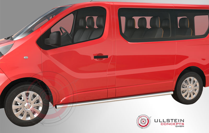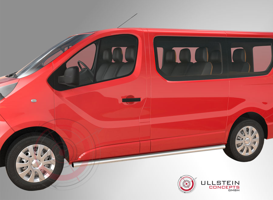 Schwellerrohre aus spiegelpoliertem Edelstahl. Enthält ein Schwellerrohr für die linke und ein Schwellerohr für die rechte Fahrzeugseite. Durch eine aufwendige Handpolitur Handpolitur unserer Edelstahlteile wird ein optimaler Korrosionsschutz gewährleistet. Unsere Flankenschutzrohre sind TÜV geprüft und werden mit TÜV Gutachten geliefert. Die computergesteuerte Produktentwicklung gewährleistet eine optimale Passform und ein harmonisches Design. Einfache Montage in ca. 30-60 Minuten. Für den Opel Vivaro ab Modell 2014.