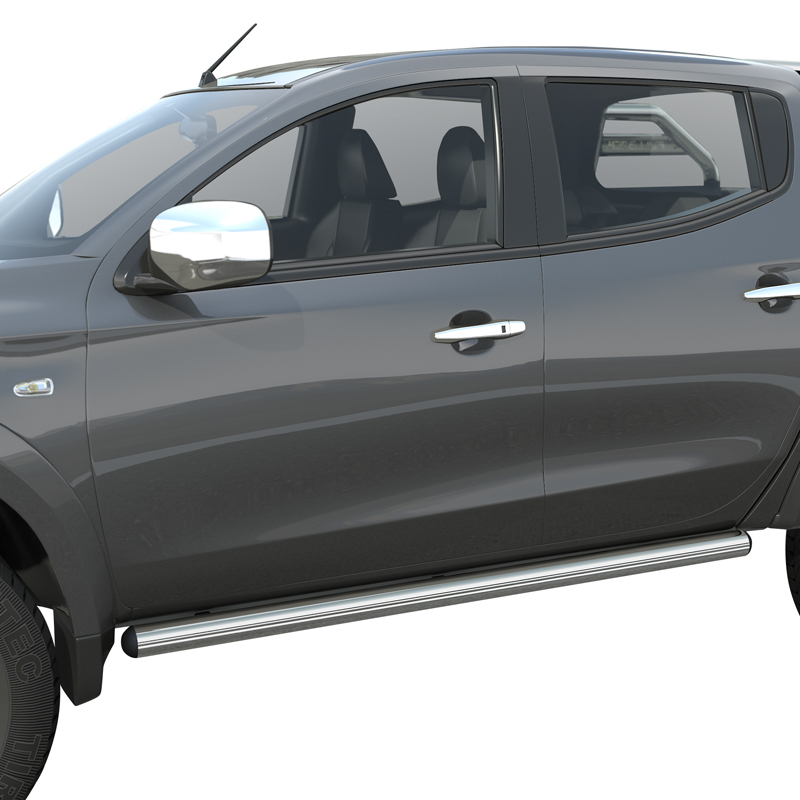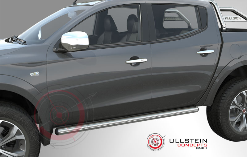 Schwellerrohre aus spiegelpoliertem Edelstahl. Enthält ein Schwellerrohr für die linke und ein Schwellerohr für die rechte Fahrzeugseite. Durch eine aufwendige Handpolitur Handpolitur unserer Edelstahlteile wird ein optimaler Korrosionsschutz gewährleistet. Abgerundet wird das Ganze durch schwarze Endkappen. Unsere Flankenschutzrohre sind TÜV geprüft und werden mit TÜV Gutachten geliefert. Die computergesteuerte Produktentwicklung gewährleistet eine optimale Passform und ein harmonisches Design. Einfache Montage in ca. 30-60 Minuten. Für Fiat Fullback ab 2016.