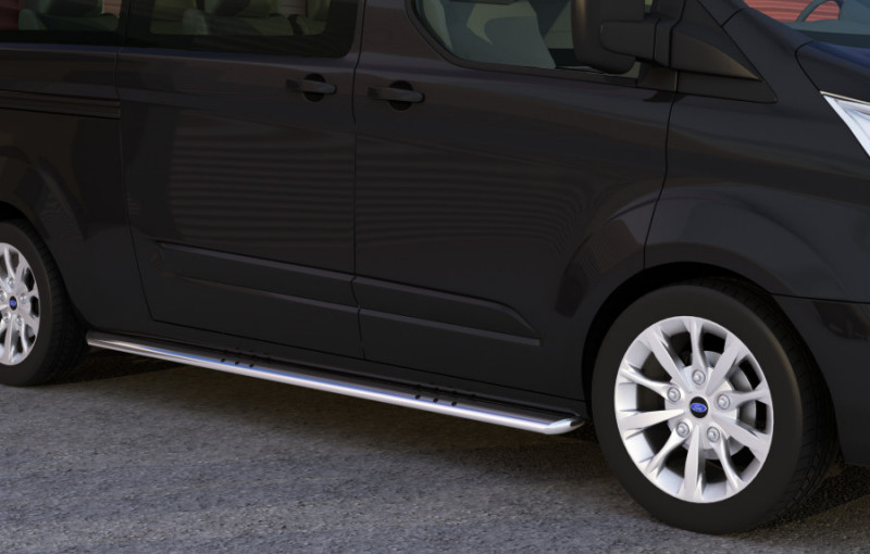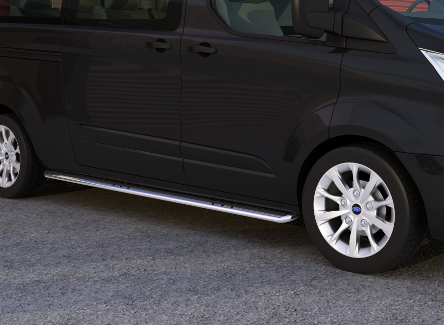 Schwellerrohre für den Ford Transit Custom Tourneo Custom aus spiegelpoliertem ovalem Edelstahl 90x45 mm mit eingesetzten Designnoppen. Enthält ein Schwellerrohr für die linke und ein Schwellerohr für die rechte Fahrzeugseite. Durch eine aufwendige Handpolitur unserer Edelstahlteile wird ein optimaler Korrosionsschutz gewährleistet. Unsere Schwellerrohre sind TÜV geprüft und werden mit TÜV Gutachten geliefert. Die computergesteuerte Produktentwicklung gewährleistet eine optimale Passform und ein harmonisches Design. Einfache Montage in ca. 30-60 Minuten. Lieferumfang: linkes und rechtes Schwellerrohre Montagematerial Montageanleitung TÜV-Gutachten
