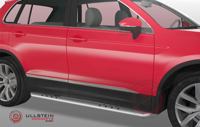 Schwellerrohre aus spiegelpoliertem Edelstahl mit Auftrittnoppen aus oval geformten Edelstahl 90x45 mm. Enthält ein Schwellerrohr für die linke und ein Schwellerohr für die rechte Fahrzeugseite. Durch eine aufwendige Handpolitur unserer Edelstahlteile wird ein optimaler Korrosionsschutz gewährleistet. Unsere Flankenschutzrohre sind TÜV geprüft und werden mit TÜV Gutachten geliefert. Die computergesteuerte Produktentwicklung gewährleistet eine optimale Passform und ein harmonisches Design. Einfache Montage in ca. 30-60 Minuten. Für den VW Tiguan ab 04/2016.