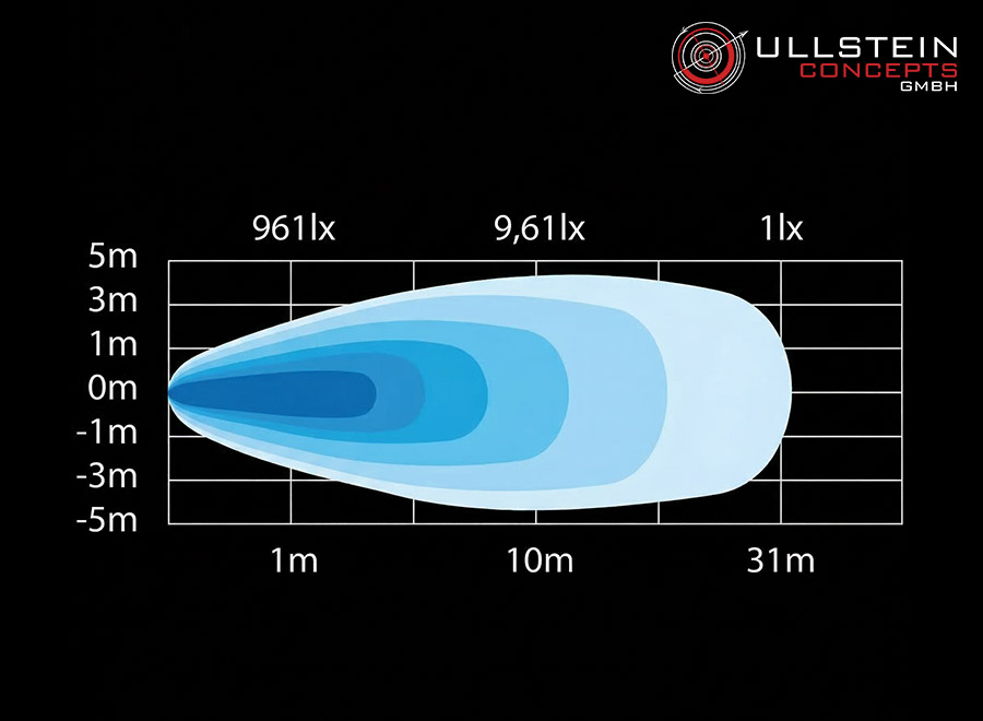 Die 52 LED Dioden sind so konstruiert, dass sie ein Abstrahlwinkel mit einer horizontalen Streuung von 180° produzieren, und einer vertikalen Streuung von 125°.