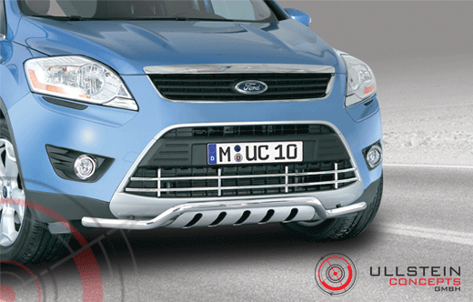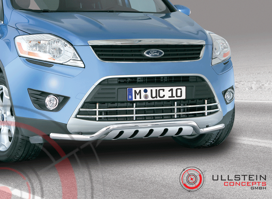 Spoilerschutzrohr aus spiegelpoliertem Edelstahl. Durch eine aufwendige Handpolitur unserer Edelstahlteile inkl. der Schweißnähte wird ein optimaler Korrosionsschutz gewährleistet. Unsere Spoilerschutzrohre sind TÜV geprüft und werden mit TÜV Gutachten geliefert. Die computergesteuerte Produktentwicklung gewährleistet eine optimale Passform und ein harmonisches Design. Die Montagezeit beträgt ca. 30-60 Minuten. Für den Ford Kuga ab Modell 2008.