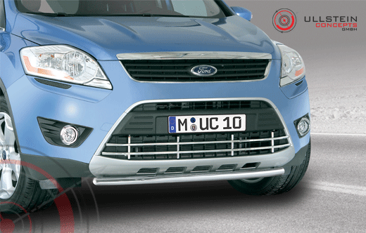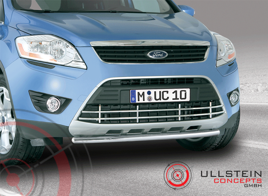 Spoilerschutzrohr aus spiegelpoliertem Edelstahl. Durch eine aufwendige Handpolitur unserer Edelstahlteile inkl. der Schweißnähte wird ein optimaler Korrosionsschutz gewährleistet. Unsere Spoilerschutzrohre sind TÜV geprüft und werden mit TÜV Gutachten geliefert. Die computergesteuerte Produktentwicklung gewährleistet eine optimale Passform und ein harmonisches Design. Die Montagezeit beträgt ca. 30-60 Minuten. Für den Ford Kuga ab Modell 2008.