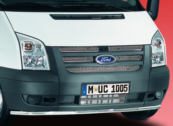 Spoilerschutzrohr aus spiegelpoliertem Edelstahl. Durch eine aufwendige Handpolitur unserer Edelstahlteile inkl. der Schweißnähte wird ein optimaler Korrosionsschutz gewährleistet. Unsere Spoilerschutzrohre sind TÜV geprüft und werden mit TÜV Gutachten geliefert. Die computergesteuerte Produktentwicklung gewährleistet eine optimale Passform und ein harmonisches Design. Für den Ford Transit ab Modell 2006. Die Montagezeit beträgt ca. 30-60 Minuten. Lieferumfang: