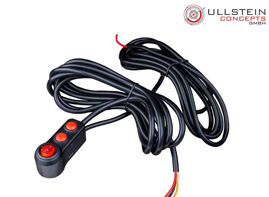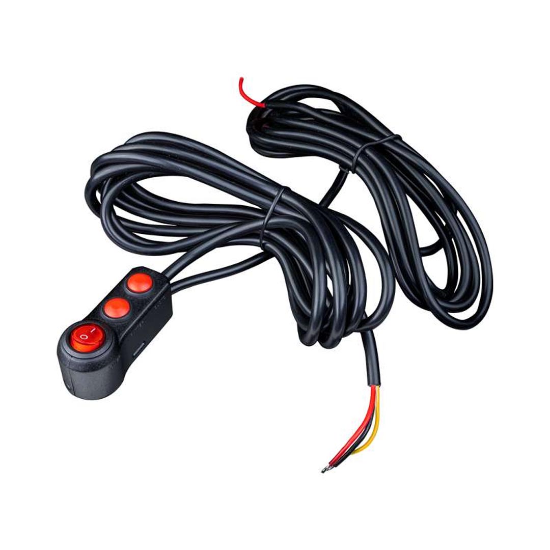 Die Fernbedienung kann mit 12 oder 24 Volt betrieben werden und wird mit einem 2,5 Meter langen Kabel geliefert. Der Cruise Light Controller ist mit einem Ein-/Ausschalter und zwei Tasten ausgestattet, mit denen Sie die verschiedenen Modi auswählen können.