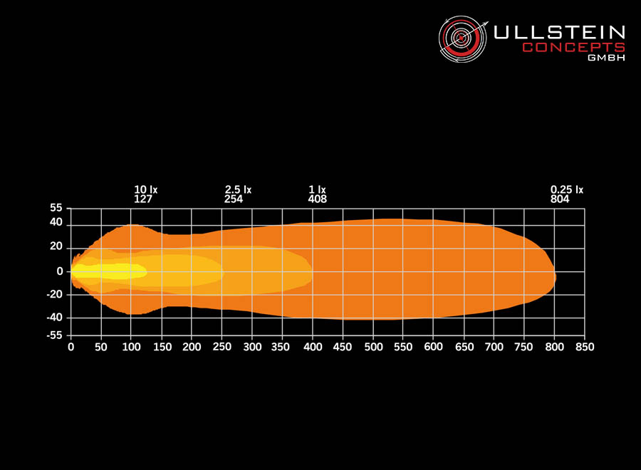 Die leistungsstarke Nuuk E-line Duo liefert eine Leuchtweite von über 400m. Mit 8350 gemessenen Lumen und einer Lichttemperatur von 5000 Kelvin sorgt die Lightbar für eine ausgewogene Ausleuchtung. Die hohe Reichweite ermöglicht das frühzeitige Erkennen von Hindernissen und Wildtieren.