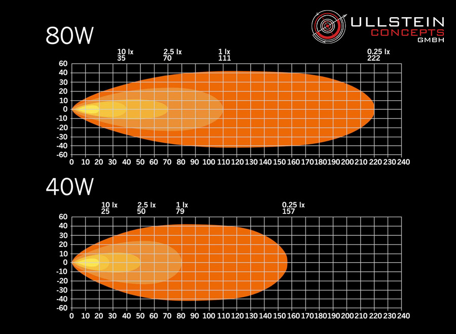 • 8200 aktive Lumen erzeugen 111m Reichweite bei 1 Lux