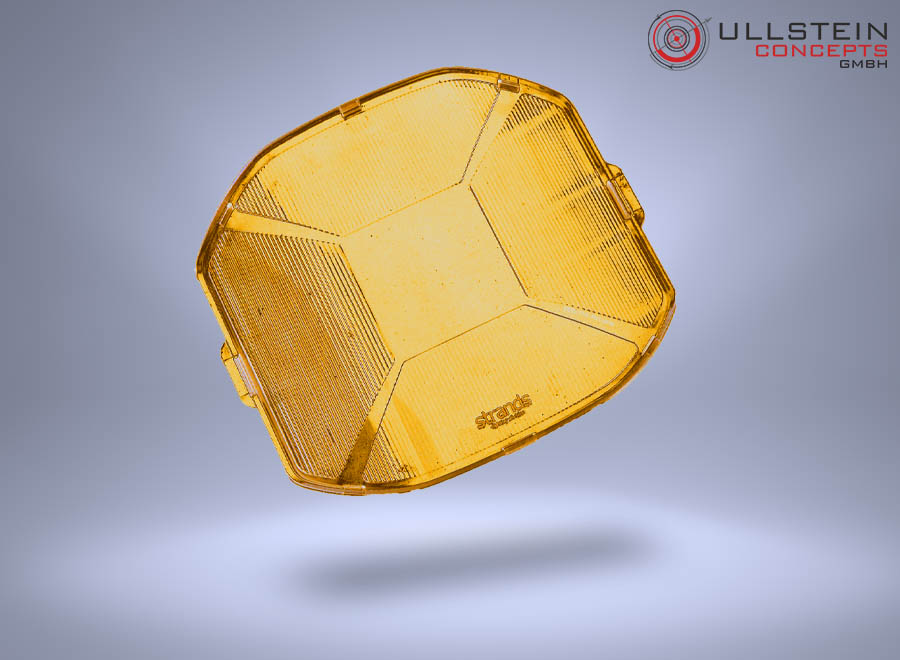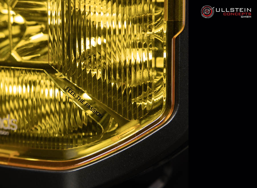 Die klare und die gelbe Polycarbonat Flutlichtabdeckung streuen das Licht und erhöhen damit Lichtausbeute an den Seiten des Fahrzeugs.