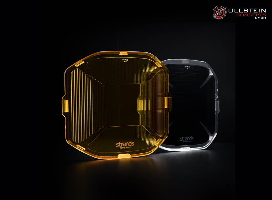 Erhältlich sind eine schwarze Schutzabdeckung, und ein durchsichtiges oder gelbes Flutlicht-Cover. Mittels Klickverschluss in Sekundenschnelle einsatzbereit.
