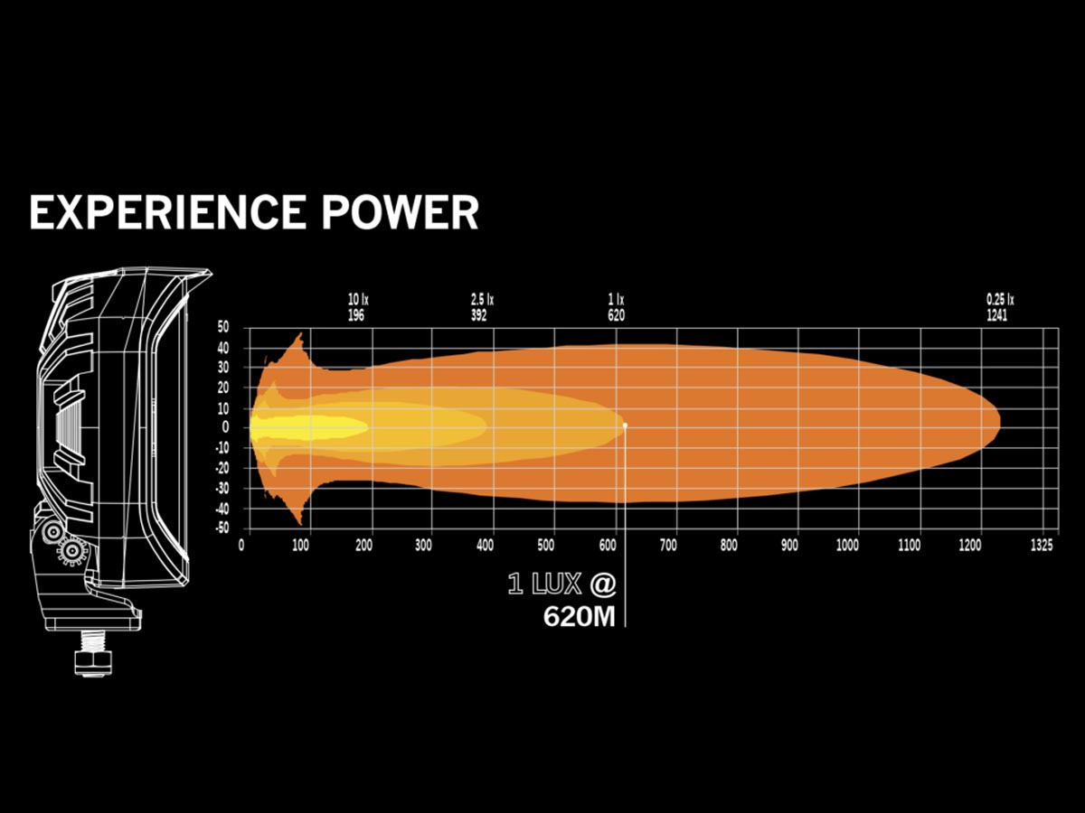 Der ungedrosselte Xperience-Modus mit 7.430 gemessenen Lumen holt das Maximum an verfügbarer Lichtleistung aus dem Zusatzscheinwerfer, und generiert dabei eine Sichtweite von beeindruckenden 620m.