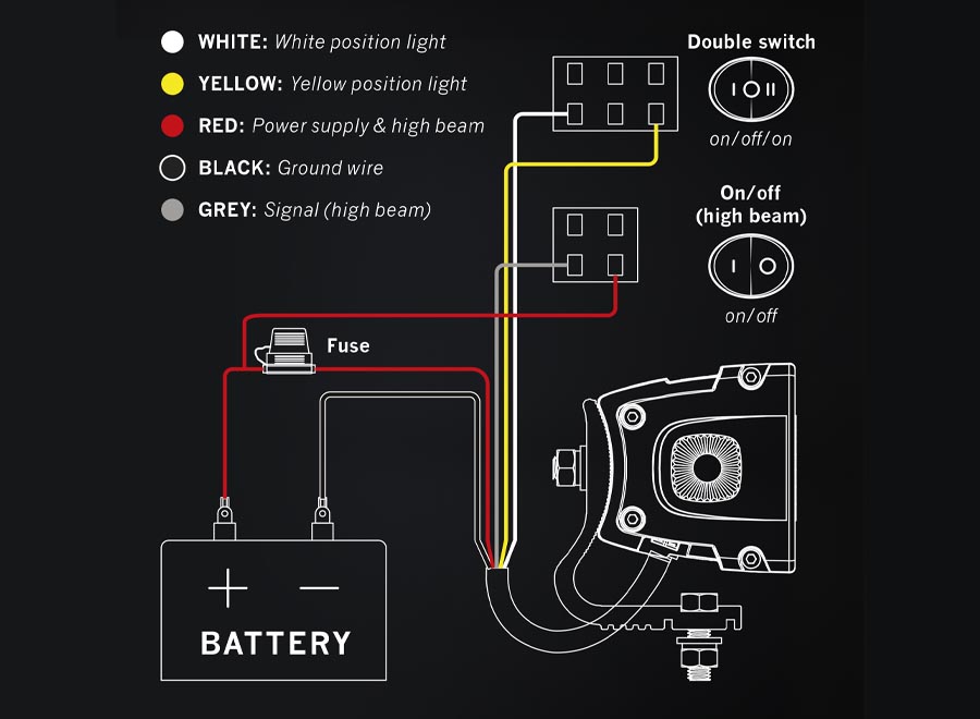 Das integrierte Relais, erleichtert die Verkabelung und Montage der Zusatzscheinwerfer erheblich.