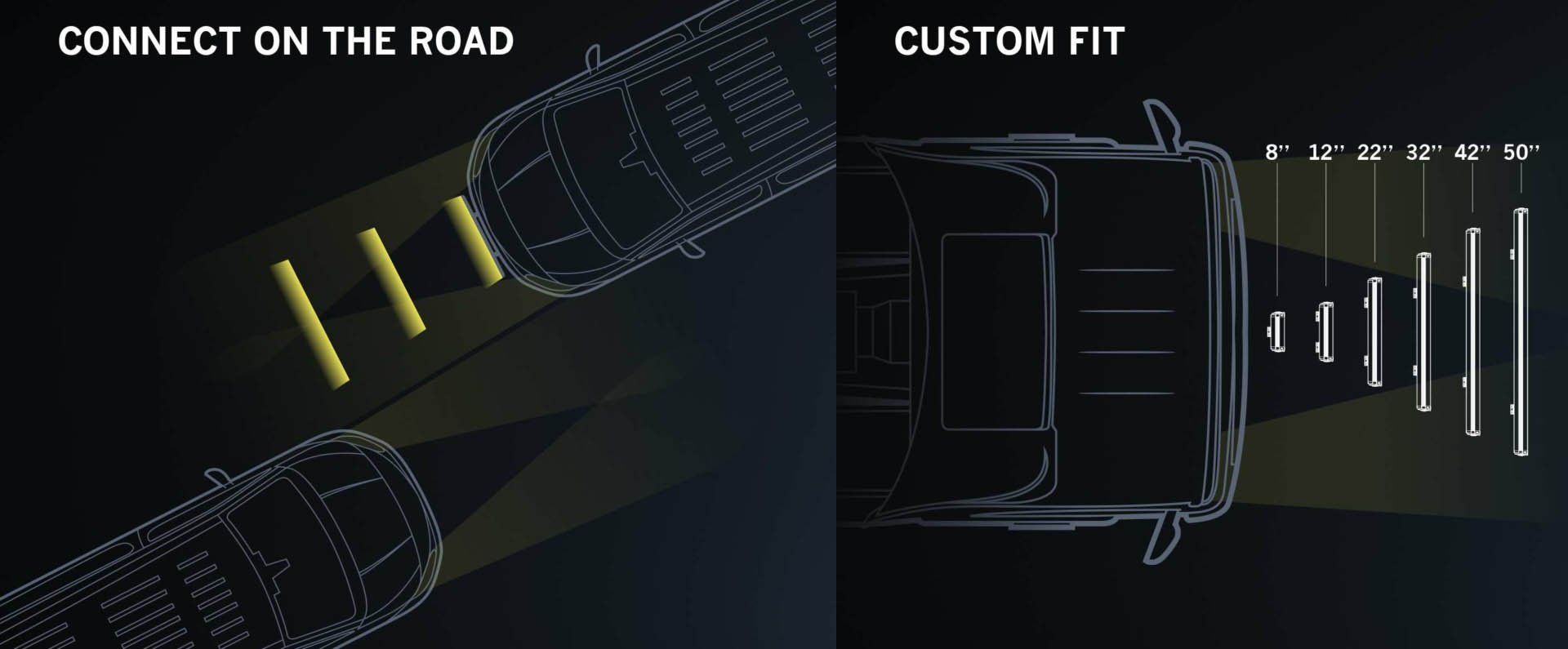 Mit dem für Straßenverhältnisse angepassten Fernscheinwerfer E-Modus erreicht die 22 Zoll (ca. 56 cm) Lightbar eine Sichtweite von 300 Meter bei 1.425 aktiven Lumen.