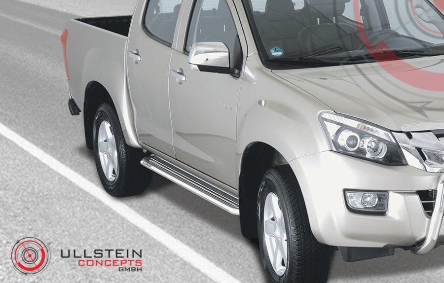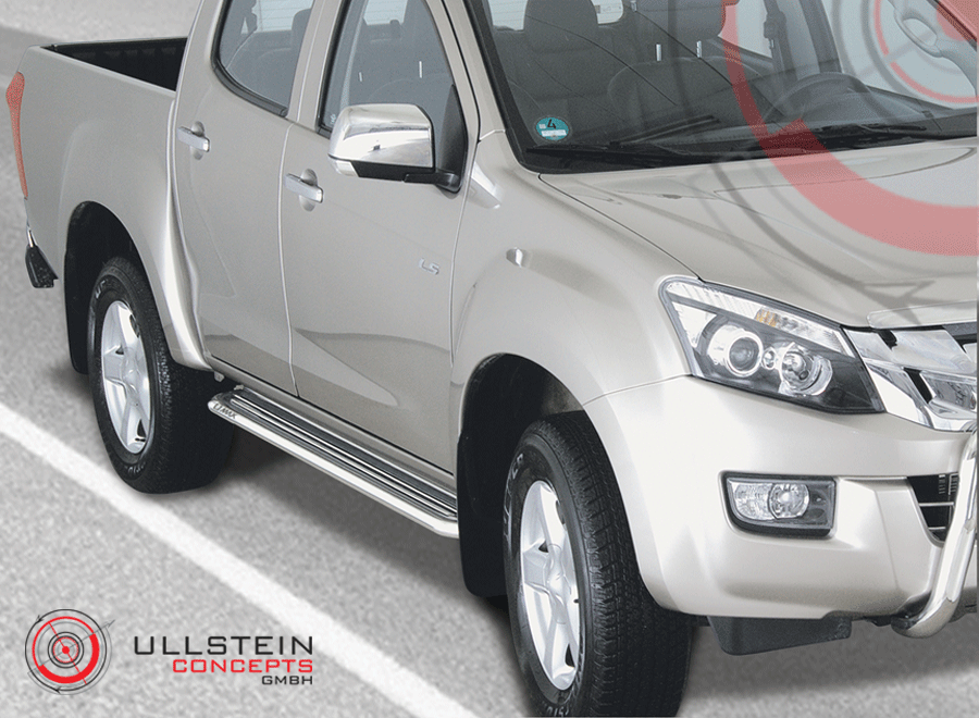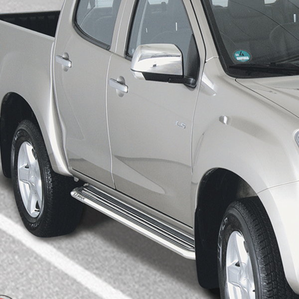 Trittbrett aus spiegelpoliertem Edelstahlrohr mit Edelstahltrittfläche. Durch eine aufwendige Handpolitur unserer Edelstahlteile wird ein optimaler Korrosionsschutz gewährleistet. Unsere Trittbretter sind TÜV geprüft und werden mit TÜV Gutachten geliefert. Die computergesteuerte Produktentwicklung gewährleistet eine optimale Passform und ein harmonisches Design. Einfache Montage in ca. 30-60 Minuten. Für Isuzu D-Max.