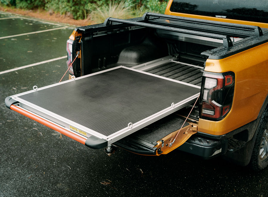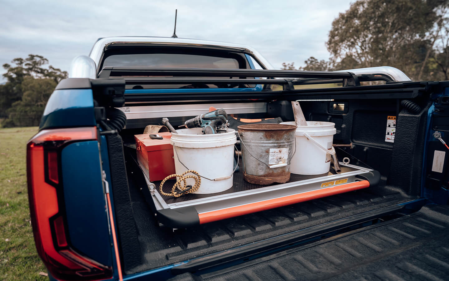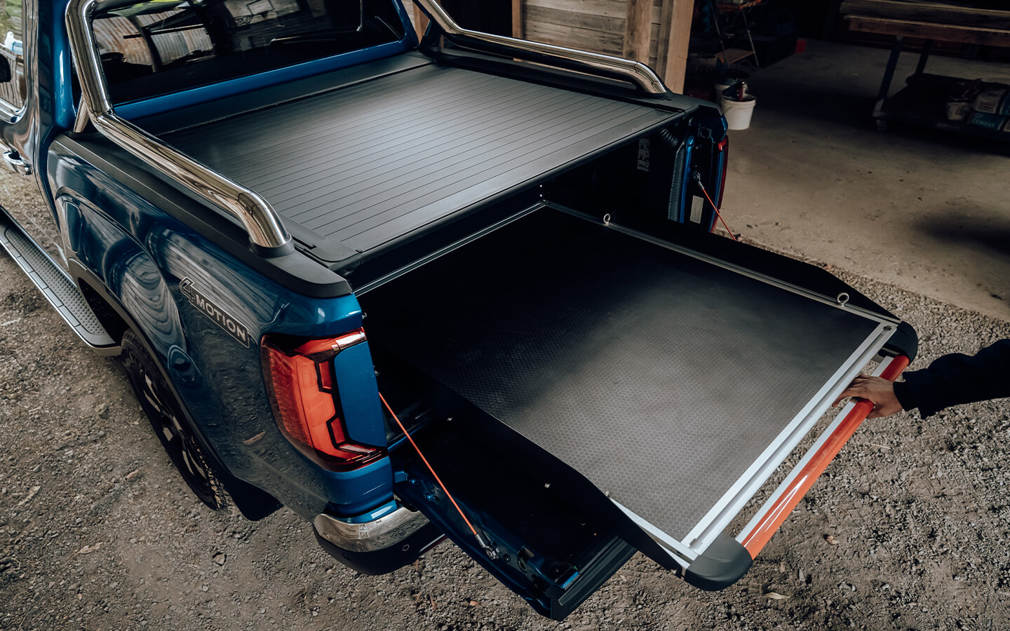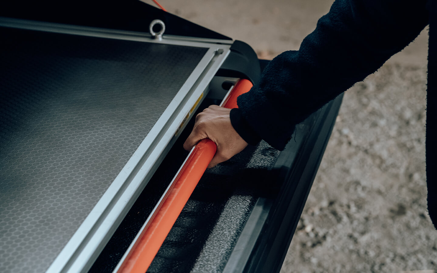 Schieben Sie den Auszug samt Beladung einfach unter die Laderaumabdeckung. So haben Sie einen leichten Zugang zur gesamten Ladefläche Ihres Pickups.