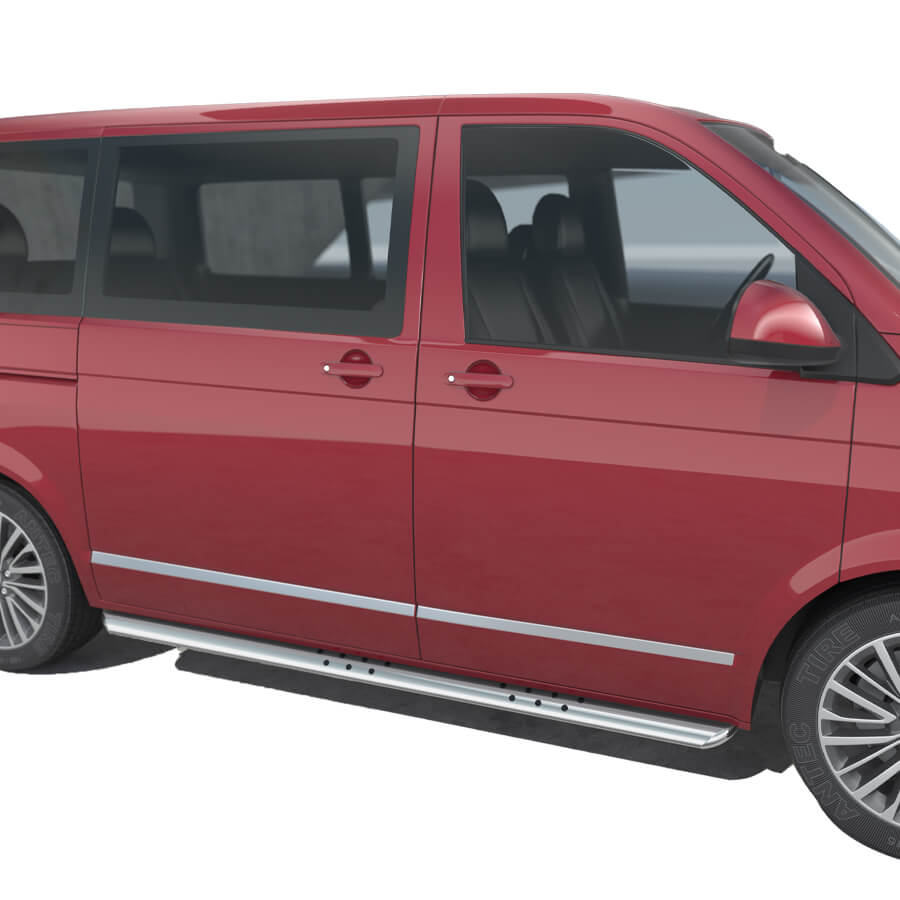 Schwellerrohre aus spiegelpoliertem Edelstahl aus oval geformten Edelstahl 90x45 mm. Enthält ein Schwellerrohr für die linke und ein Schwellerohr für die rechte Fahrzeugseite. Durch eine aufwendige Handpolitur unserer Edelstahlteile wird ein optimaler Korrosionsschutz gewährleistet. Hervorragende Verarbeitung der schrägen Rohrenden. Unsere Flankenschutzrohre sind TÜV geprüft und werden mit TÜV Gutachten geliefert. Die computergesteuerte Produktentwicklung gewährleistet eine optimale Passform und ein harmonisches Design. Einfache Montage in ca. 30-60 Minuten. Für den Volkswagen T6 und T6.1 Radstand 3000 mm, nicht montierbar mit PanAmericana 4 Motion.