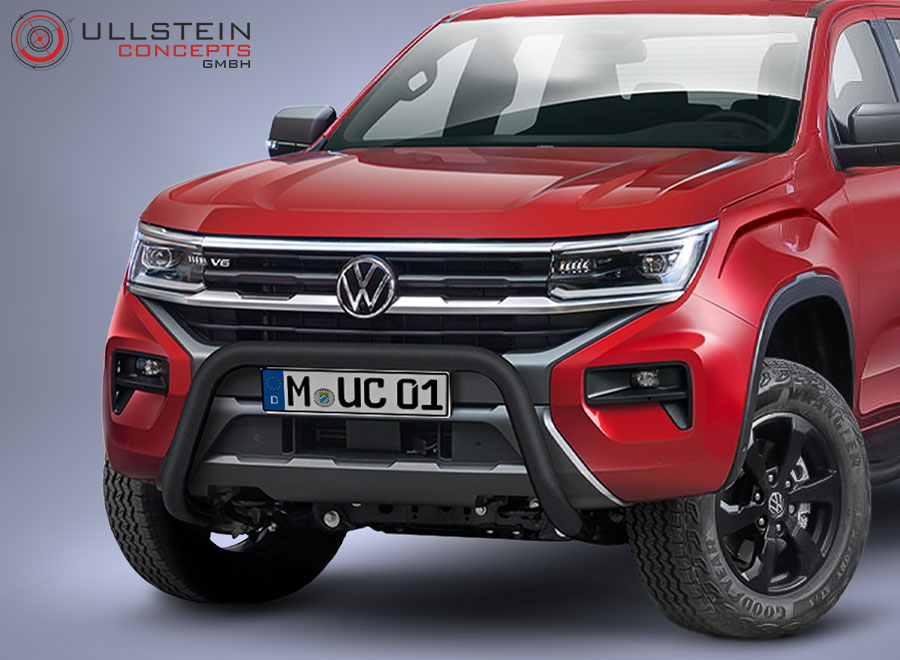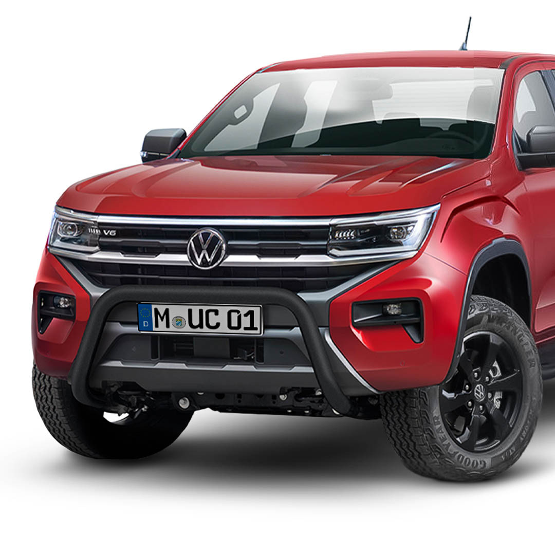 Frontschutzbügel Schwarz passend für den VW Amarok ab Baujahr 2023 einschließlich der Modellvarianten Amarok Life, Amarok Style, Amarok Aventura und Amarok PanAmericana.