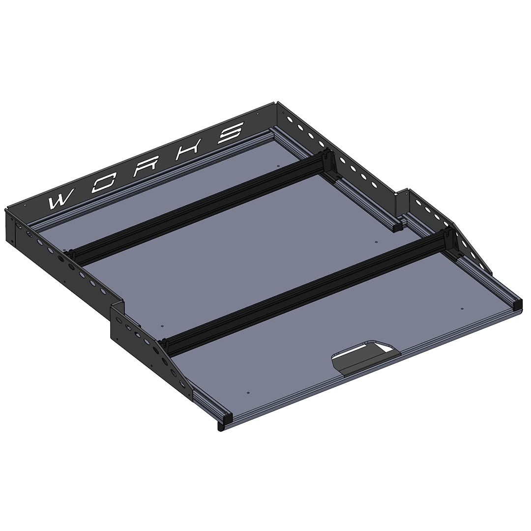 Bei der Entwicklung war es uns dennoch wichtig die Flexibilität der Worksschublade nicht einzuschränken. Mit wenigen Handgriffen lässt sich der Querbalken ohne Werkzeug einfach umsetzen. Soweit die Quertraverse kurzzeitig weg soll, lässt sich auch diese einfach einzeln weg nehmen.