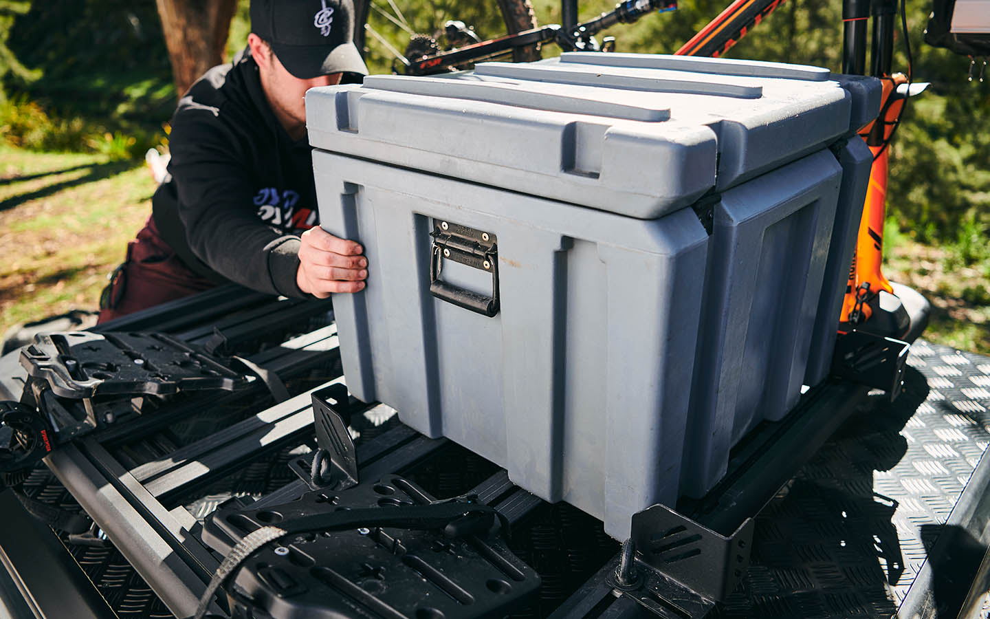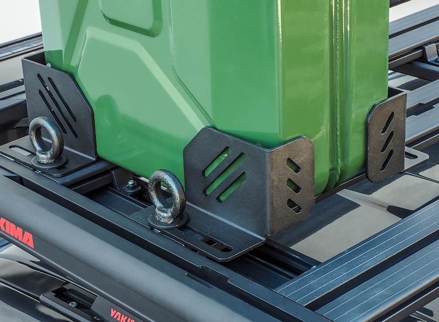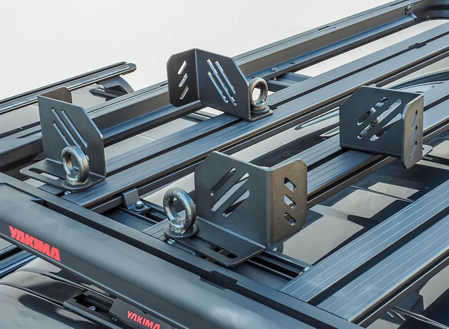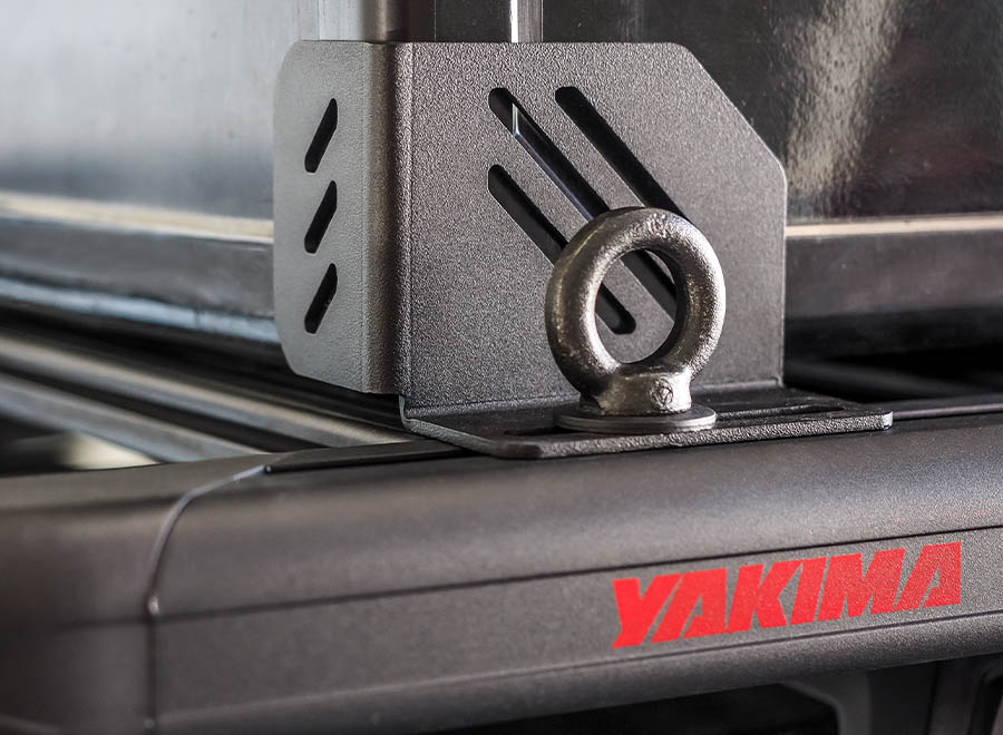 Das Yakima Dachträger Eckwinkel-Kit kann an jeder beliebigen Stelle der LocknLoad Plattform angebracht werden, um Werkzeugkiste, Kühlbox oder andere sperrige Gegenstände zu fixieren (in Verbindung mit separat erhältlichen Befestigungsgurt). Inklusive vier Verzurrösen.