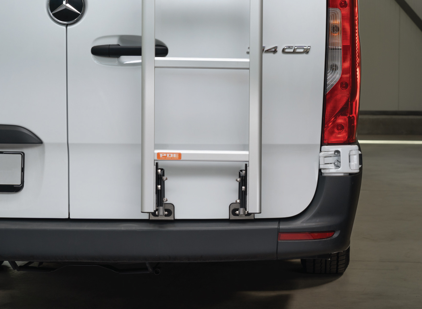 Die PDE Aluminium-Heckleiter ist passgenau für viele Nutzfahrzeuge erhältlich, einschließlich Fiat