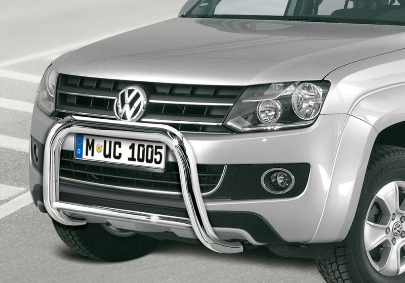Barra di protezione anteriore in acciaio lucidato a specchio con OMOLOGAZIONE UE. Dal 11/2019 non é necessario andare in Motorizzazione, ma vanno conservati i documenti forniti a bordo del veicolo. La sofisticata lucidatura a mano delle nostre parti in acciaio, comprese le saldature, assicura una protezione ottimale dalla corrosione. Lo sviluppo computerizzato del prodotto assicura una forma perfettamente adattabile e un design armonico. Il montaggio richiede circa 30 - 60 minuti. Per Volkswagen Amarok Cabina Doppia.