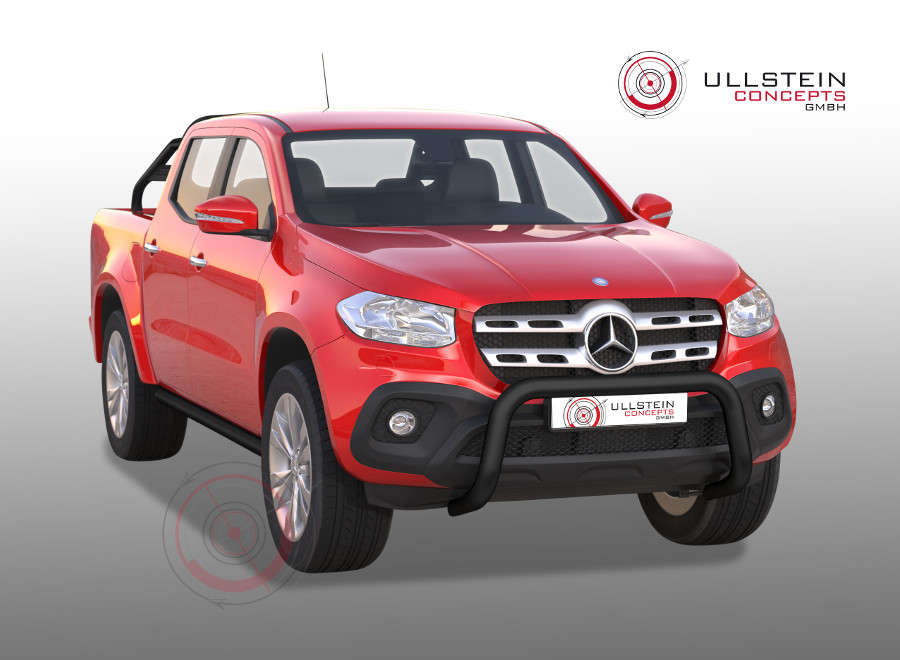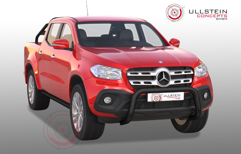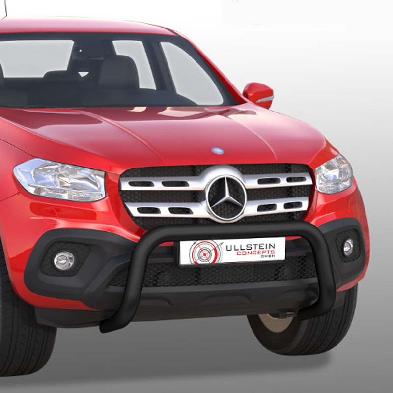 Barra di protezione anteriore in acciaio con trattamento superficiale in nero per una protezione ottimale dalla corrosione con OMOLOGAZIONE UE. Dal 11/2019 non é necessario andare in Motorizzazione, ma vanno conservati i documenti forniti a bordo del veicolo. Lo sviluppo computerizzato del prodotto assicura una forma perfettamente adattabile e un design armonico. Per Mercedes classe X Modello 2017. Il montaggio richiede circa 60 - 90 minuti.