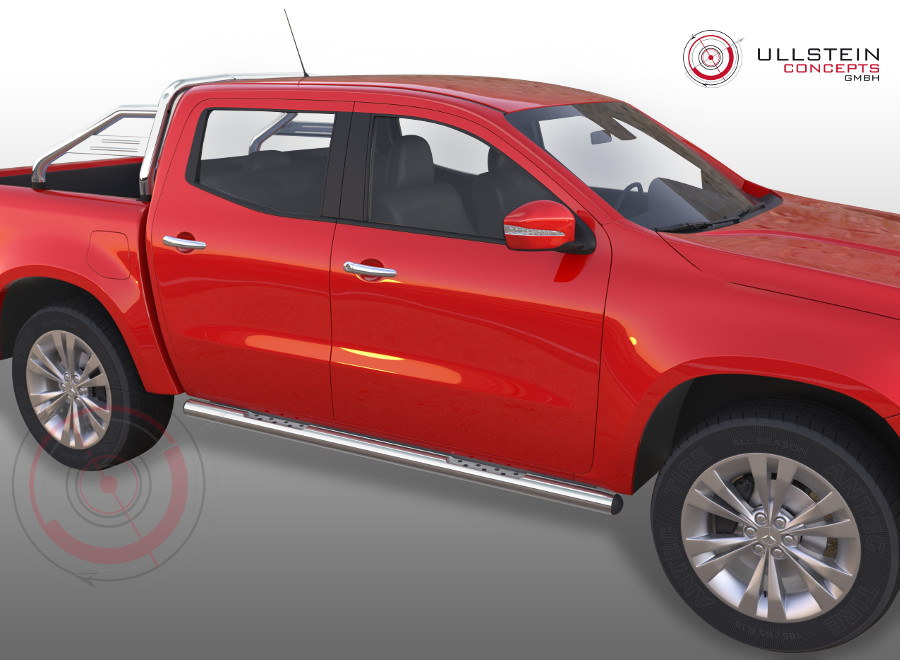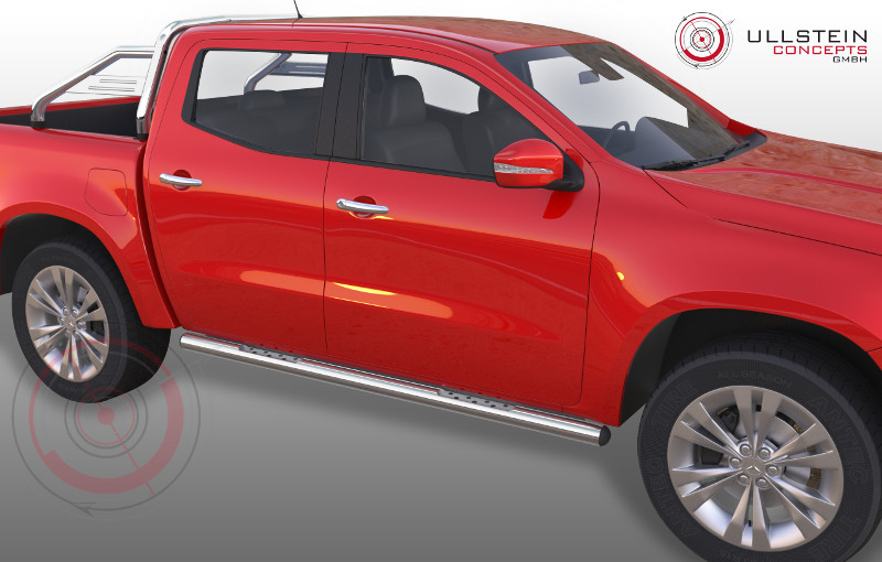 Barre laterali da 76 mm in acciaio lucidato a specchio con nottolini antiscivolo. Contiene una barra laterale destra e una sinistra. Le nostre barre laterali sono collaudate dal TÜV e vengono fornite con perizia TÜV. Lo sviluppo computerizzato del prodotto assicura una forma perfettamente adattabile e un design armonico. Montaggio semplice in circa 30 - 60 minuti.